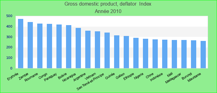 The GDP deflator is derived by dividing current price GDP by constant price GDP and is considered to be an alternate measure of inflation. Please note: Data are expressed in the base year of each country's national accounts. Index.
