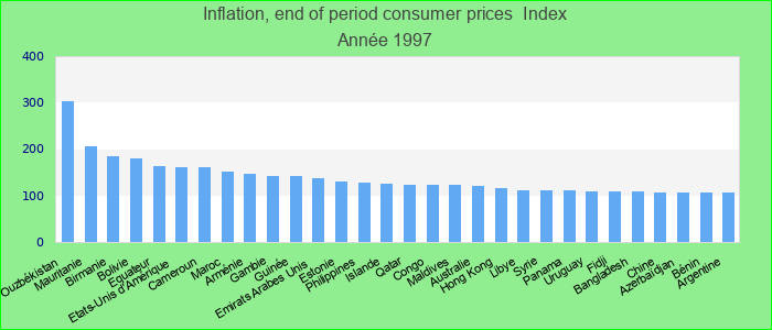 Inflation, end of period consumer prices 1997