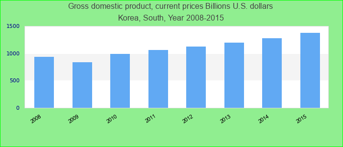 国内毛总产值以当前10亿美元为单位: 韩国