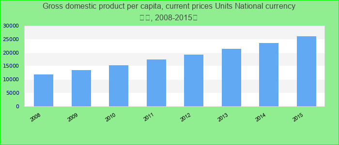 GDP is expressed in current national currency per person. Data are derived by dividing current price GDP by total population. Units National currency.