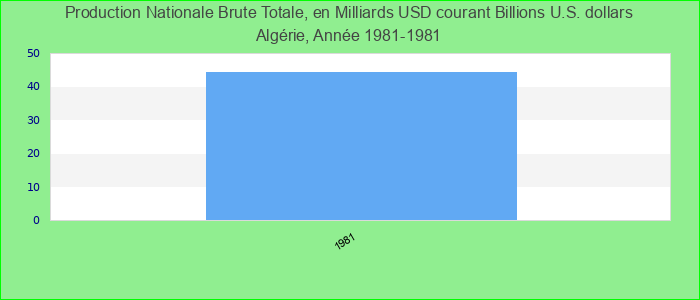 Production Nationale Brute Totale, en Milliards USD courant Algérie