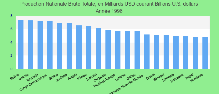 国内毛总产值以当前10亿美元为单位: 1996