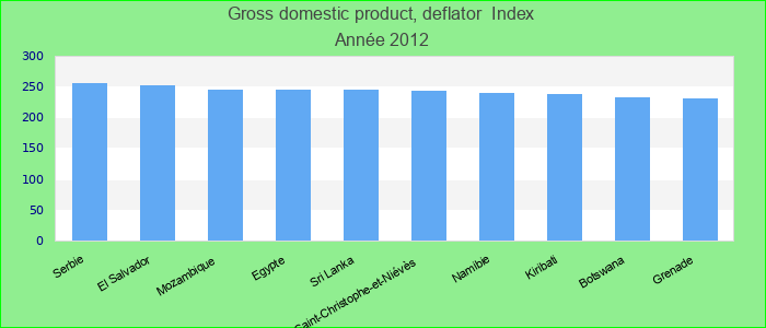 The GDP deflator is derived by dividing current price GDP by constant price GDP and is considered to be an alternate measure of inflation. Please note: Data are expressed in the base year of each country's national accounts. Index.