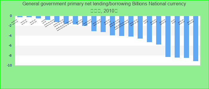 Primary net lending/borrowing is net lending (+)/borrowing (?) plus net interest payable/paid (interest expense minus interest revenue). Billions National currency.