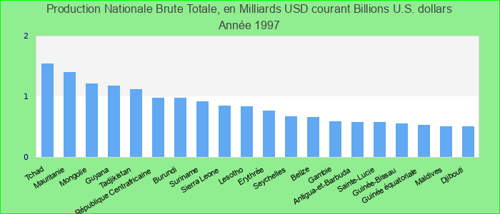 Production Nationale Brute Totale, en Milliards USD courant 1997