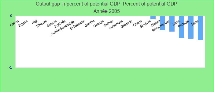 Output gap in percent of potential GDP 2005