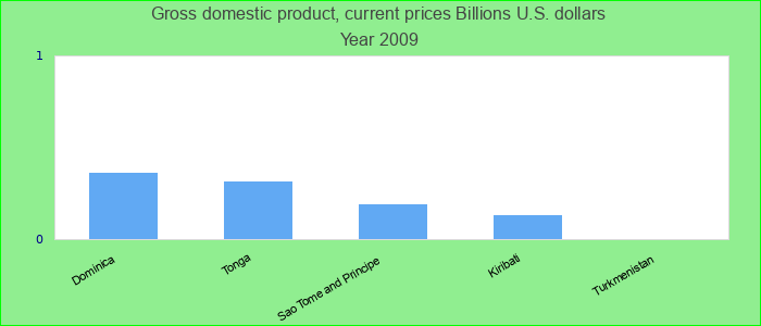 国内毛总产值以当前10亿美元为单位: 2009