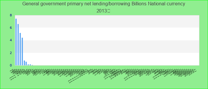 Primary net lending/borrowing is net lending (+)/borrowing (?) plus net interest payable/paid (interest expense minus interest revenue). Billions National currency.