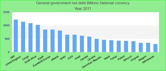 Net debt is calculated as gross debt minus financial assets corresponding to debt instruments. These financial assets are: monetary gold and SDRs, currency and deposits, debt securities, loans, insurance, pension, and standardized guarantee schemes, and o Billions National currency.