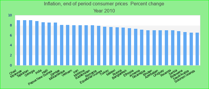 Inflation, end of period consumer prices 2010