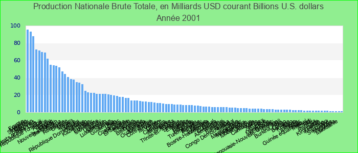 Production Nationale Brute Totale, en Milliards USD courant 2001
