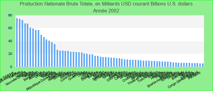 Production Nationale Brute Totale, en Milliards USD courant 2002