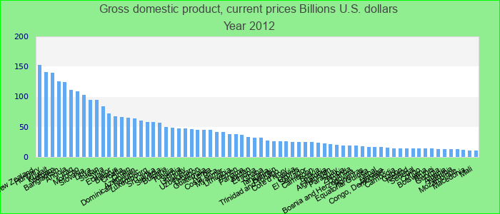 Production Nationale Brute Totale, en Milliards USD courant 2012