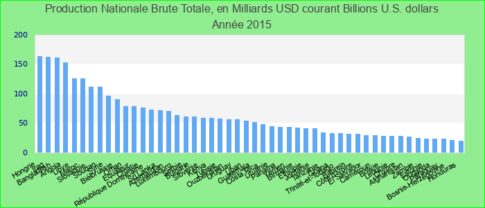 Production Nationale Brute Totale, en Milliards USD courant 2015