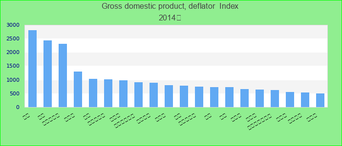 The GDP deflator is derived by dividing current price GDP by constant price GDP and is considered to be an alternate measure of inflation. Please note: Data are expressed in the base year of each country's national accounts. Index.