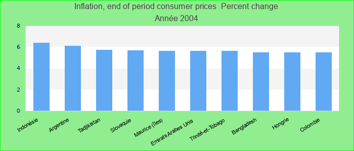 Inflation, end of period consumer prices 2004