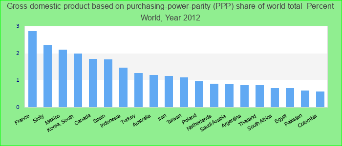 These data form the basis for the country weights used to generate the World Economic Outlook country group composites for the domestic economy. Please note: The IMF is not a primary source for purchasing power parity (PPP) data. WEO weights have been Percent.