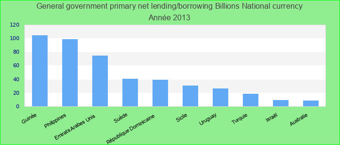 Primary net lending/borrowing is net lending (+)/borrowing (?) plus net interest payable/paid (interest expense minus interest revenue). Billions National currency.