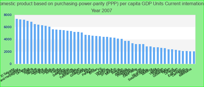 Production Nationale Brute Par Habitant en USD basé sur la Parité de Pouvoir d'Achat: 2007