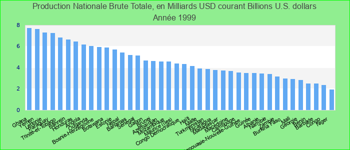 Production Nationale Brute Totale, en Milliards USD courant 1999