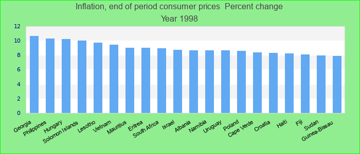 Inflation, end of period consumer prices 1998