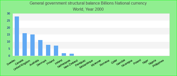 The structural budget balance refers to the general government cyclically adjusted balance adjusted for nonstructural elements beyond the economic cycle. These include temporary financial sector and asset price movements as well as one-off, or temporary, Billions National currency.