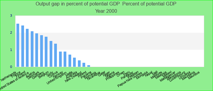 Output gap in percent of potential GDP 2000