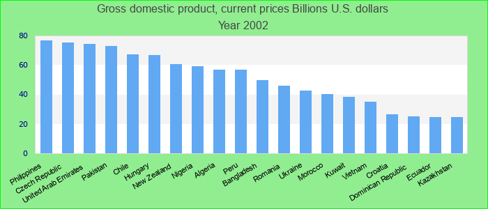 国内毛总产值以当前10亿美元为单位: 2002