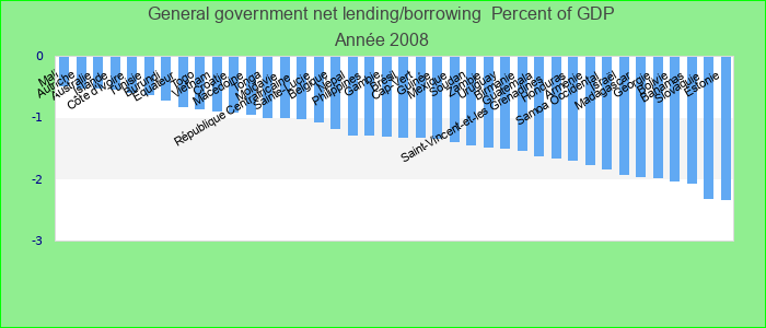 General government net lending/borrowing 2008
