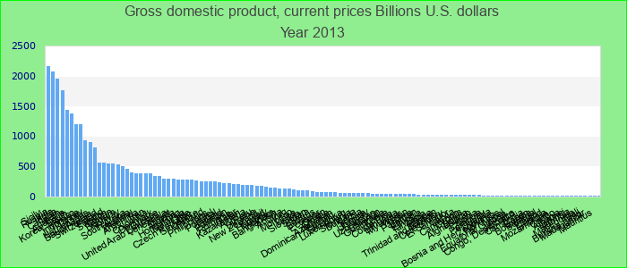 国内毛总产值以当前10亿美元为单位: 2013